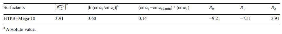 表2膠束中的平均相互作用參數(shù)值,bmic 12,ln cmc1=cmc2 je?cmc12,min)/(cmc1),以及根據(jù)Maeda方法的HTPB+Mega-10表面活性劑二元混合物的相互作用參數(shù)