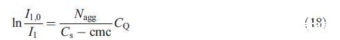 為了評估Nagg,我們使用了實驗部分[26]中所述的猝滅劑(CPYC)對探針(芘)的穩(wěn)態(tài)熒光猝滅。該方法基于已知濃度的猝滅劑對發(fā)光探針的猝滅。已發(fā)現(xiàn)該探針-猝滅劑對適用于評估幾種膠束系統(tǒng)的Nagg[3,15–17,24,27]。使用以下方程[26]分析淬火實驗: