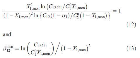 混合膠束規(guī)則溶液理論可以推廣到混合單層。為了評估混合單分子層中的相互作用參數(shù)bmon 12,可以在恒定γ值下推導(dǎo)出混合膠束的類似方程,如下[24,25]: