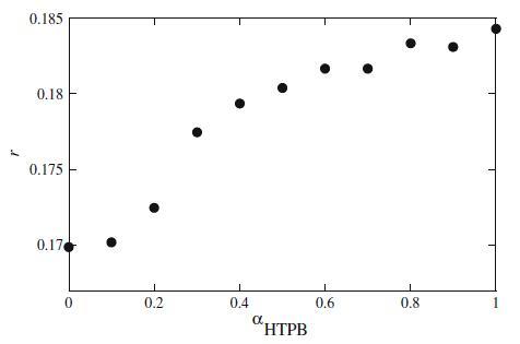 圖8 HTPB+Mega-10混合體系的熒光各向異性r與αHTPB的關(guān)系圖