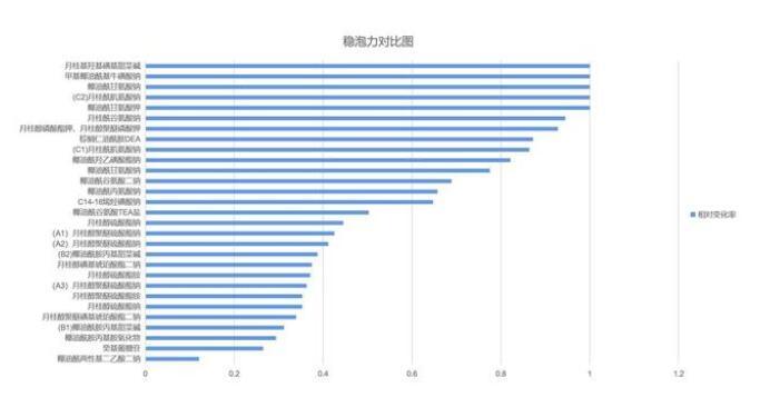 評估標(biāo)準(zhǔn):相對變化率值越大,穩(wěn)泡能力越弱