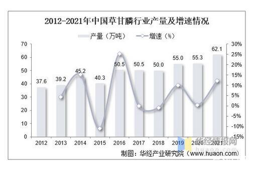 2012-2021年中國草甘膦行業(yè)產量及增速情況