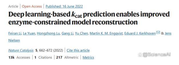 該研究以「Deep learning-based kcat prediction enables improved enzyme-constrained model reconstruction」為題,于2022年6月16日發(fā)布在《Nature Catalysis》。