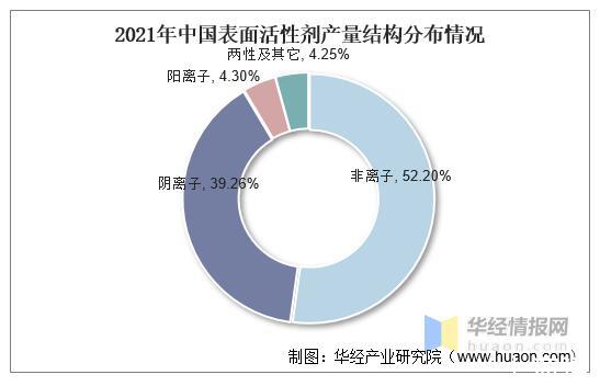 2021年中國(guó)表面活性劑產(chǎn)量結(jié)構(gòu)分布情況