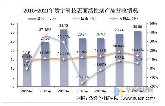 贊宇科技集團(tuán)股份有限公司是專業(yè)從事表面活性劑、油脂化學(xué)品研發(fā)制造和洗化產(chǎn)品代加工的高新技術(shù)企業(yè)。長(zhǎng)期以來(lái),公司憑借先進(jìn)的理念、科學(xué)的管理以及技術(shù)和人才的優(yōu)勢(shì),堅(jiān)持自主創(chuàng)新,走科技成果產(chǎn)業(yè)化的發(fā)展道路,現(xiàn)已成為國(guó)內(nèi)研究和生產(chǎn)表面活性劑的龍頭企業(yè)之一。據(jù)資料顯示,2021年公司表面活性劑產(chǎn)品營(yíng)收為30.99億元,同比增長(zhǎng)5.98%,毛利率為14.41%。