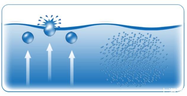 理論上氣泡形成消耗能量依賴于界面面積,界面面積決定于氣泡表面張力。直徑小于25微米的小氣泡表面剛性強(qiáng),類似于高壓氣球,不容易破裂。數(shù)毫米直徑的大氣泡表面比較柔軟,很容易變形破裂。大氣泡的浮力比較大很容易上升到液面。Stokes公式R=ρgd2/18μ(ρ=密度,g=重力加速度,d=氣泡直徑,μ=粘滯度)可計(jì)算氣泡上浮速度。氣泡上漂浮速度和氣泡直徑的平方成正比,這種關(guān)系只使用于小氣泡。直徑大于2毫米的大氣泡由于外形發(fā)生變化,上升速度并不會受直徑影響。低于1微米的納米氣泡上升速度非常慢,遠(yuǎn)低于布朗運(yùn)動,整體上表現(xiàn)為不上升。
