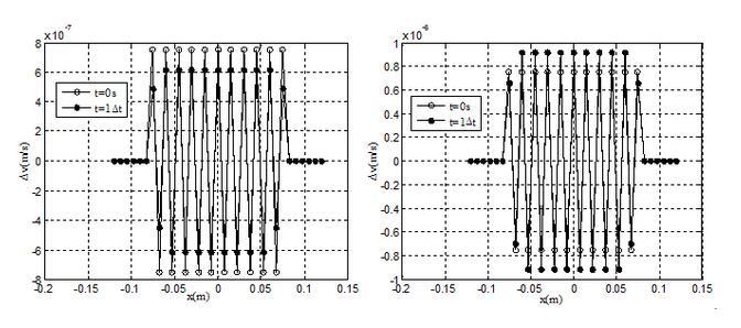壓縮狀態(tài)下速度擾動(dòng)振幅變化(左)和拉伸狀態(tài)下速度擾動(dòng)振幅變化(右)