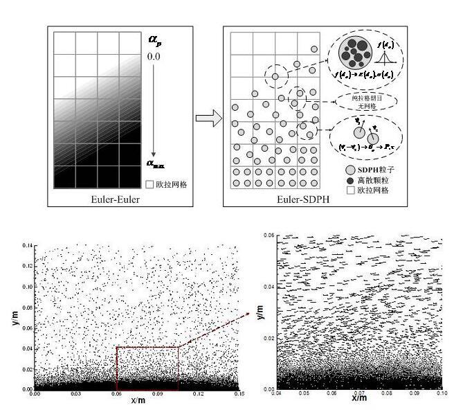 為解決現(xiàn)有模型和算法在求解氣-粒兩相流動(dòng)問題遇到的不足,基于顆粒動(dòng)力學(xué)模型,通過增加SPH粒子所表征的顆粒的材料屬性,推導(dǎo)SPH粒子屬性與顆粒屬性間的關(guān)系式,將SPH改造成適于離散相求解的SDPH方法,建立SPH粒子與真實(shí)顆粒間的一一對應(yīng)關(guān)系;在此基礎(chǔ)上,分別采用SDPH方法和FVM對TFM模型中的離散相和連續(xù)相進(jìn)行求解,推導(dǎo)SDPH和FVM離散方程組,搭建SDPH與FVM耦合框架,實(shí)現(xiàn)SDPH-FVM耦合算法流程。