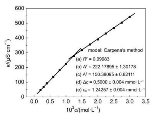 圖4電導(dǎo)法測量含有表面活性劑溶液的臨界膠束濃度