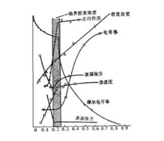 溶液體相中出現(xiàn)膠束后,繼續(xù)增加濃度時,體相中單體的濃度將不再上升,因此從理論上來講,凡是利用膠束形成而發(fā)生不連續(xù)變化的性質(zhì)都可以被用來測量CMC。但是需要注意,有些性質(zhì)對單體濃度敏感、有些對膠束敏感,因此同一個表面活性劑用不同的方法測量的CMC數(shù)值存在微小的差異是正常的。測量臨界膠束濃度的方法很多,比較常用的有表面張力法、電導(dǎo)法、染料法、增溶法、滲透壓法、脈沖射解法、熒光法、超聲吸附法、濁度法、pH值法、流變法、離子選擇性電極法和循環(huán)伏安法等。