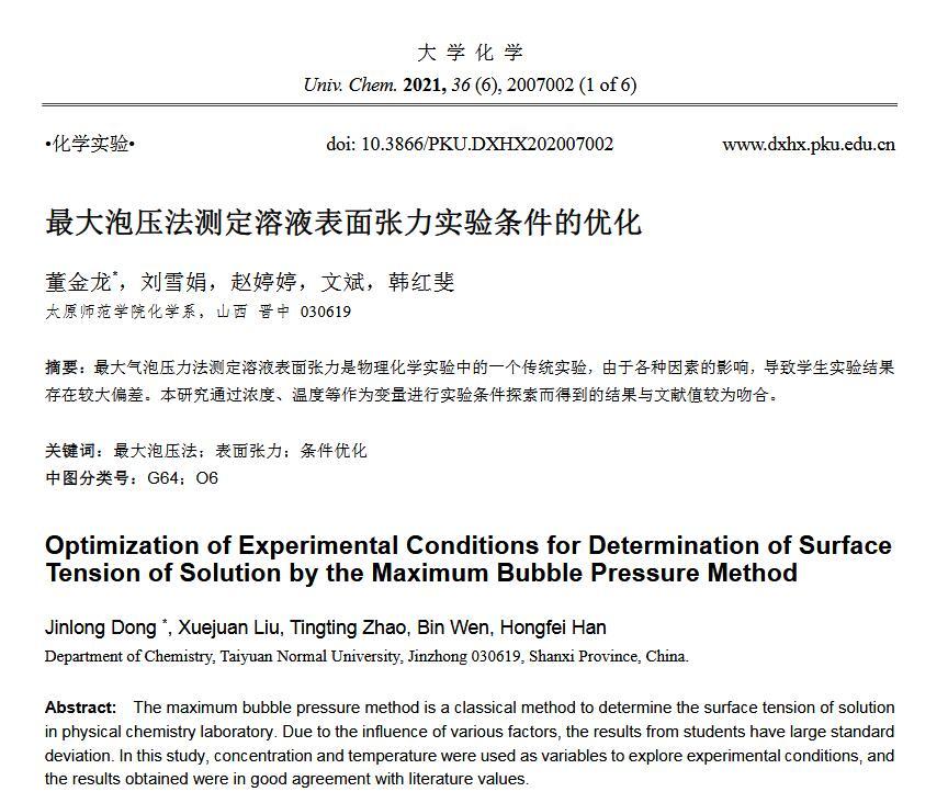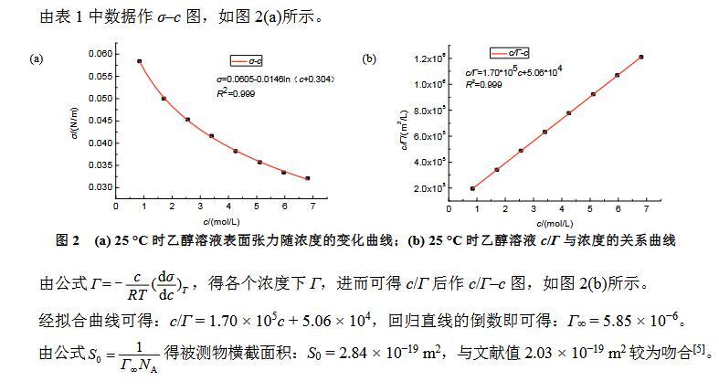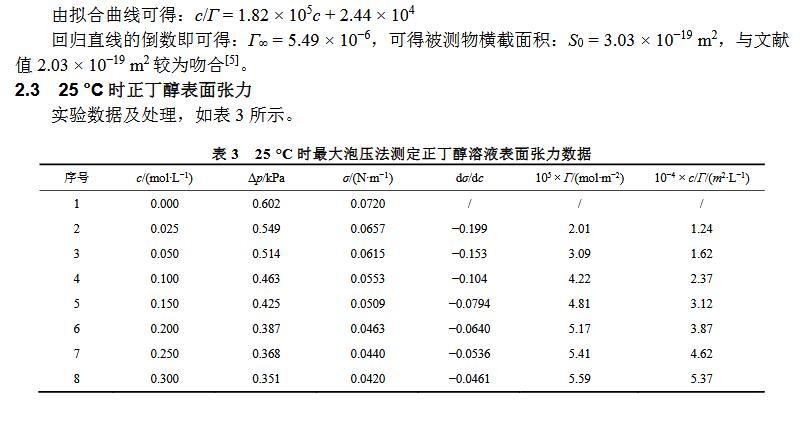 最大泡壓法測(cè)定溶液表面張力實(shí)驗(yàn)條件的優(yōu)化