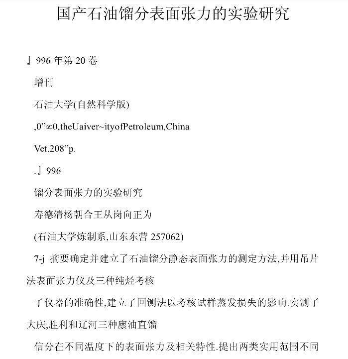 【摘要】:確定并建立了石油餾分靜態(tài)表面張力的測定方法,并用吊片法表面張力儀及三種純烴考核了儀器的準(zhǔn)確性,建立了回測法以考核試樣蒸發(fā)損失的影響。實側(cè)了大慶、勝利和遼河三種原油直餾餾分在不同溫度下的表面張力及相關(guān)特性。提出兩類實用范圍不同的預(yù)測國產(chǎn)石油餾分表面張力關(guān)聯(lián)式,其平均相對偏差分別為1.17%~1.26%和1.77%~2.77%,可滿足一般工藝要求。