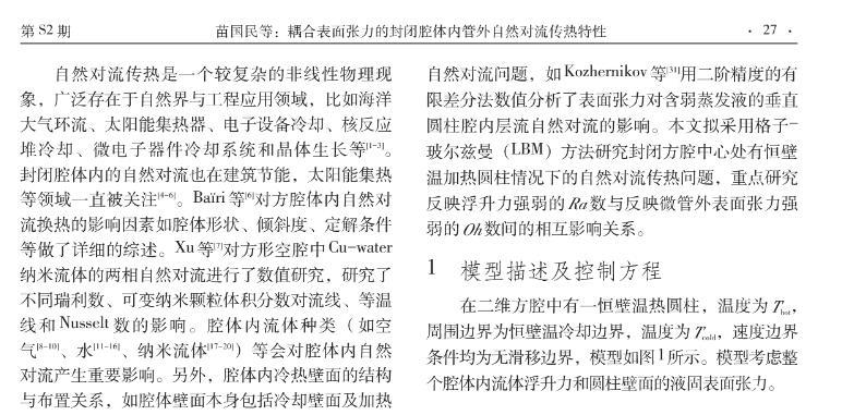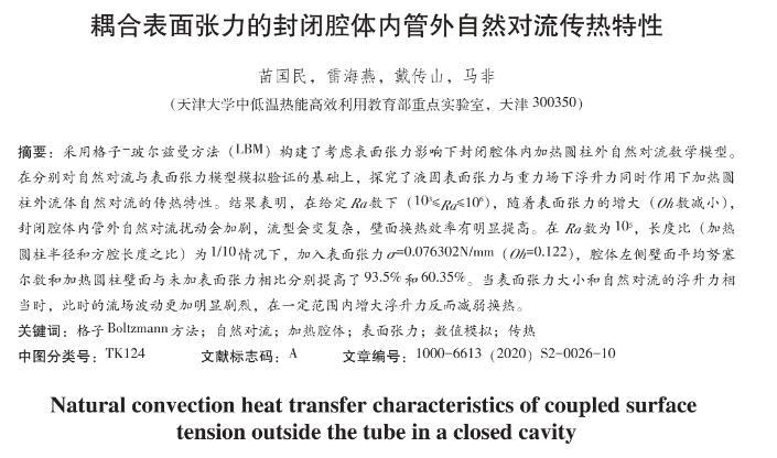 耦合表面張力的封閉腔體內(nèi)管外自然對流傳熱特性