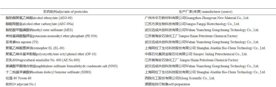 70%吡蟲啉WG(Imidacloprid 700 WG)為青島瀚生生物科技股份有限公司產(chǎn)品。農(nóng)藥助劑見表1。