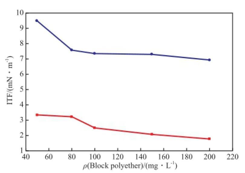 圖1兩種嵌段聚醚對(duì)油水界面張力的影響