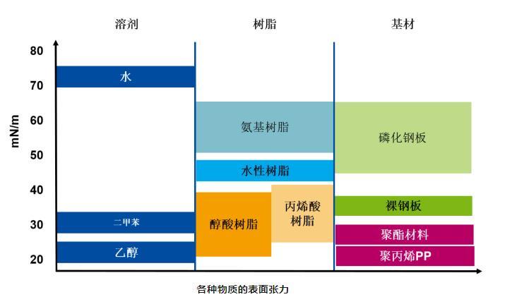為什么現(xiàn)在的涂料工程師嘴里一直講降低表面張力了?那是因為,隨著水性漆的不斷發(fā)展,很多企業(yè)都在油改水,由油性漆改換水性漆,而原來的油性漆中各種溶劑的表面張力都集中在20-40之間,唯獨水的表面張力系數(shù)72.8mN/m(20℃)。下面一起了解下表面張力在涂料中的應(yīng)用。